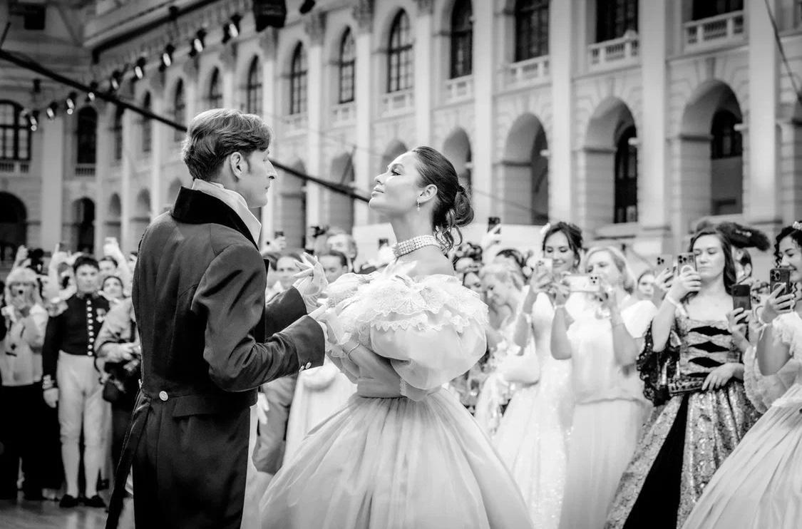 Ляйсан Утяшева и Павел Воля стали хозяйкой и хозяином бала в честь 225-летия со дня рождения великого русского поэта А. С. Пушкина, реконструкция старинного бала XVIII века.